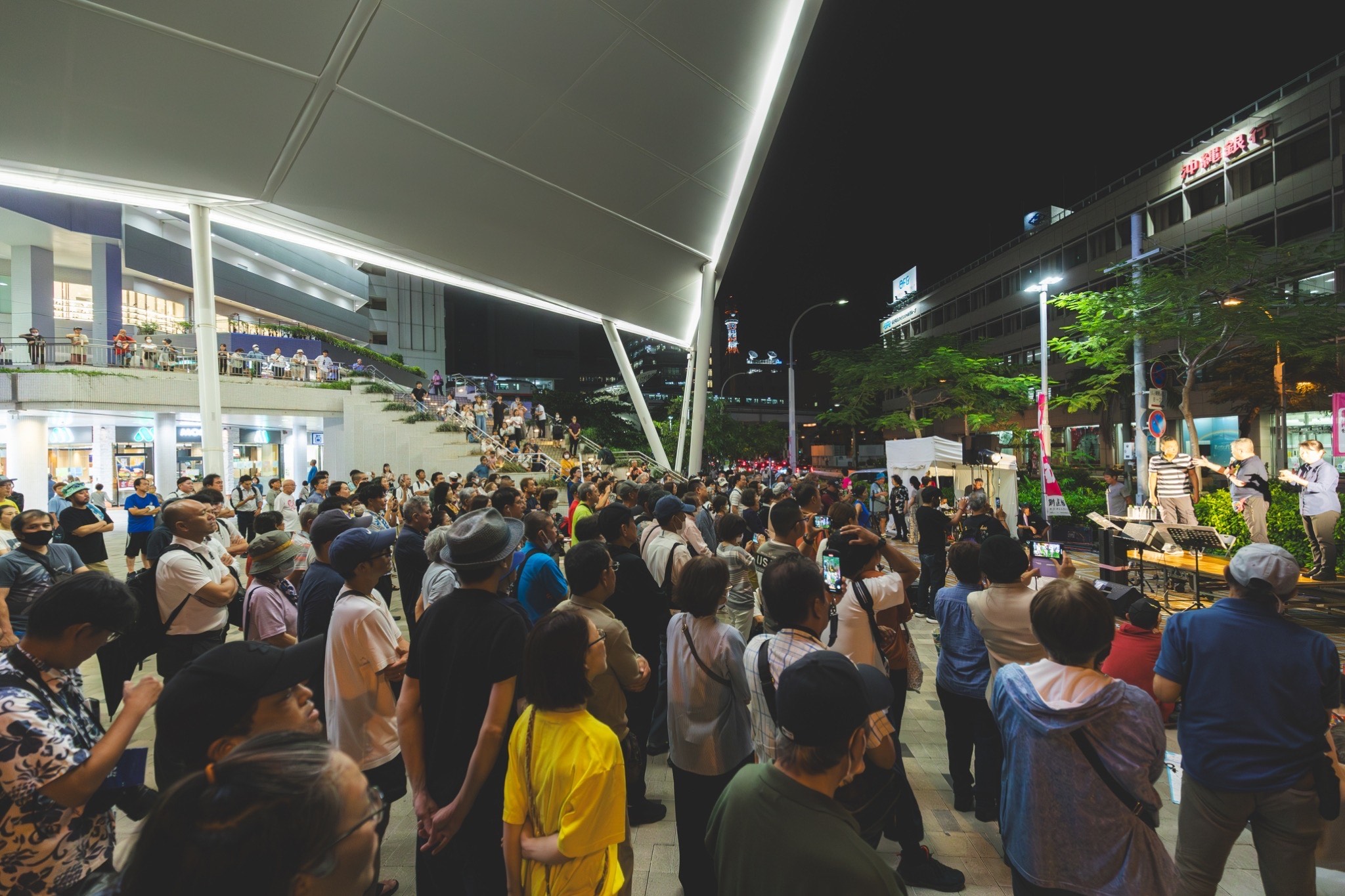 れいわ新選組の街宣(22日、沖縄県那覇市パレット久茂地前)
