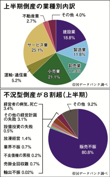 また、飲食業の倒産で増加率が大きいのは「バー、キャバレー、ナイトクラブ」(前年同期比84・6%増)や「そば・うどん店」(同50・0%増)などだ。コロナ禍の収束で直接的な関連倒産は減少傾向にある一方で、物価高倒産が増加(49件、前年同期比4・2%増)し、最多を更新している。