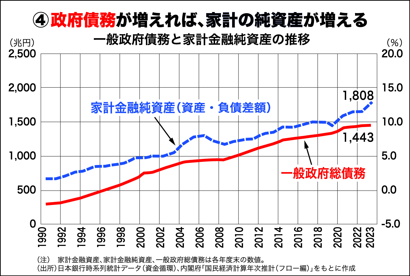 0@2 4政府債務が増えれば、家計の純資産が増える