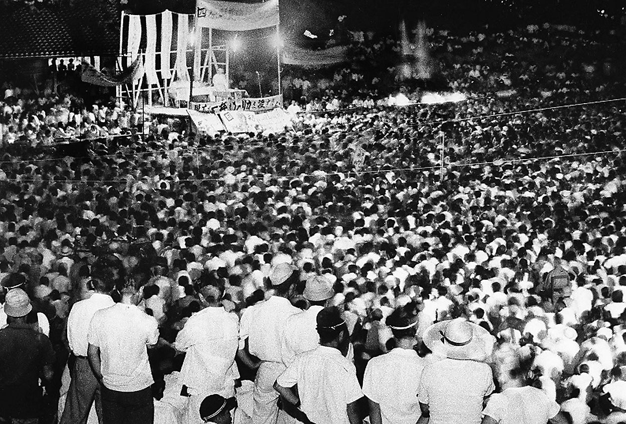 米軍の土地強制接収と基地拡張に15万人が抗議した地区住民大会(1956年6月、沖縄)