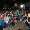 札幌駅前の街頭記者会見に集まった人々(9月24日)