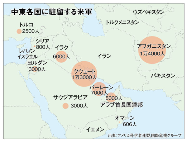 ところが米軍はIS掃討のためにイラクに駐屯している建前になっているが、そのIS掃討作戦で各民兵組織に影響力を持ち、指揮を振るって尊敬を集めていたソレイマニを殺害した。中東地域の安定のために駐留しているのではなく、目的が別であることを自己暴露している。イラクには5200人の米軍が駐屯しているというが、中東地域にはのべ7万人の米兵が配置され、これらは要するに中東全域に睨みを効かせると同時にイラン包囲網でもある。