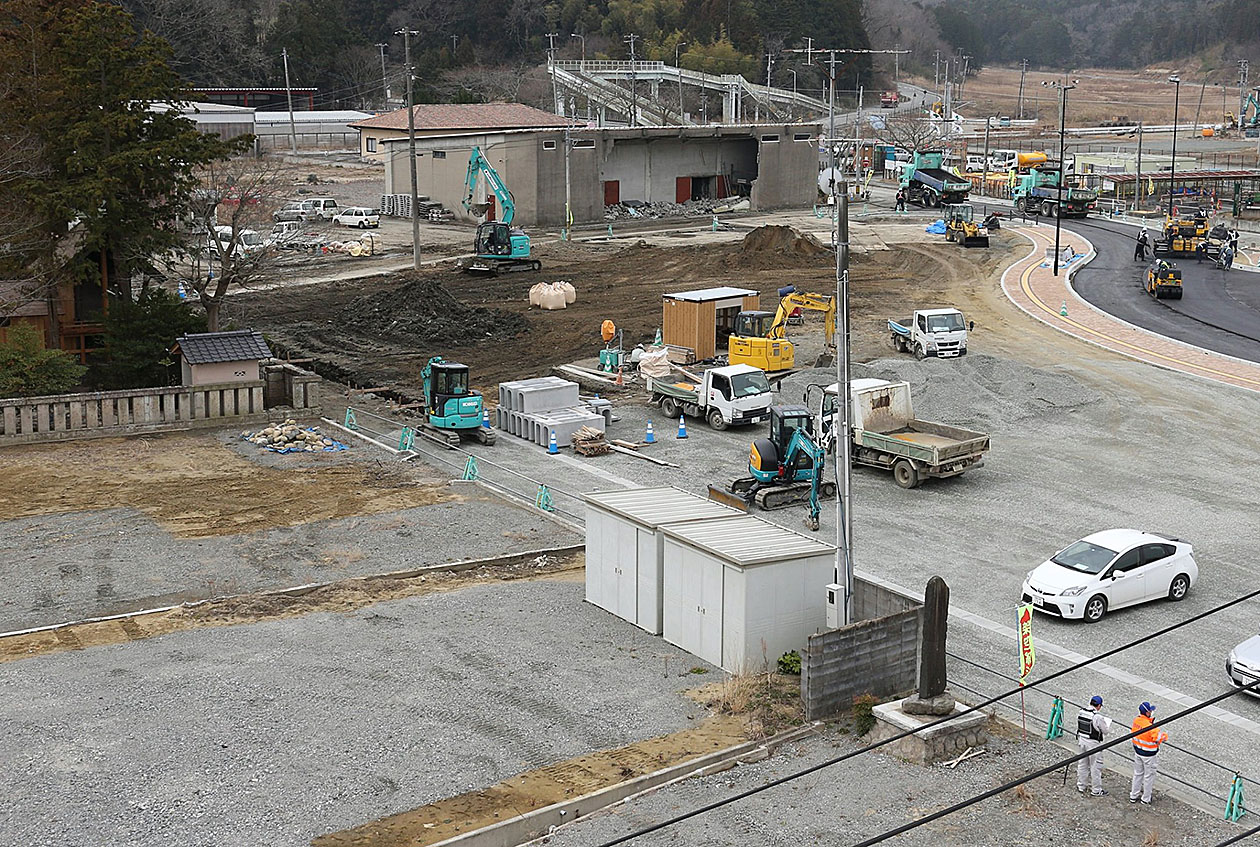 双葉駅前の聖火ランナーコース付近では解体工事が急ピッチで進められていた(2月25日)