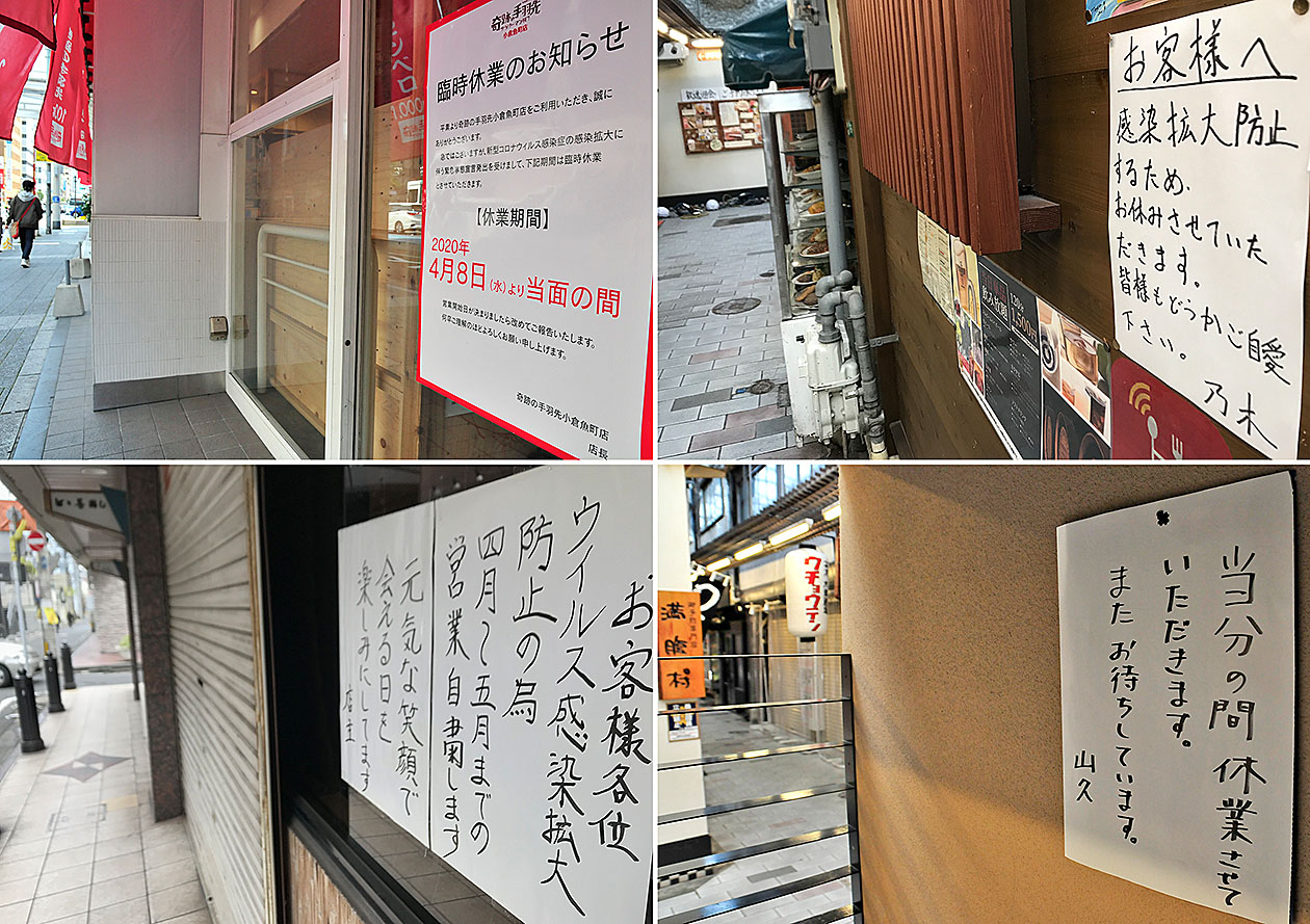 各店舗に貼られた臨時休業のお知らせ(北九州市小倉北区)
