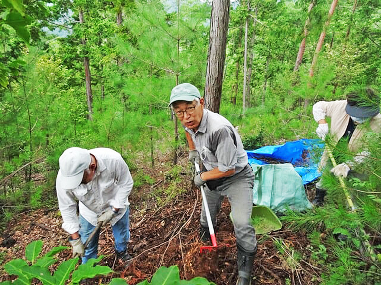 アカマツ林での地掻き作業(『まつたけ山復活させ隊』提供)