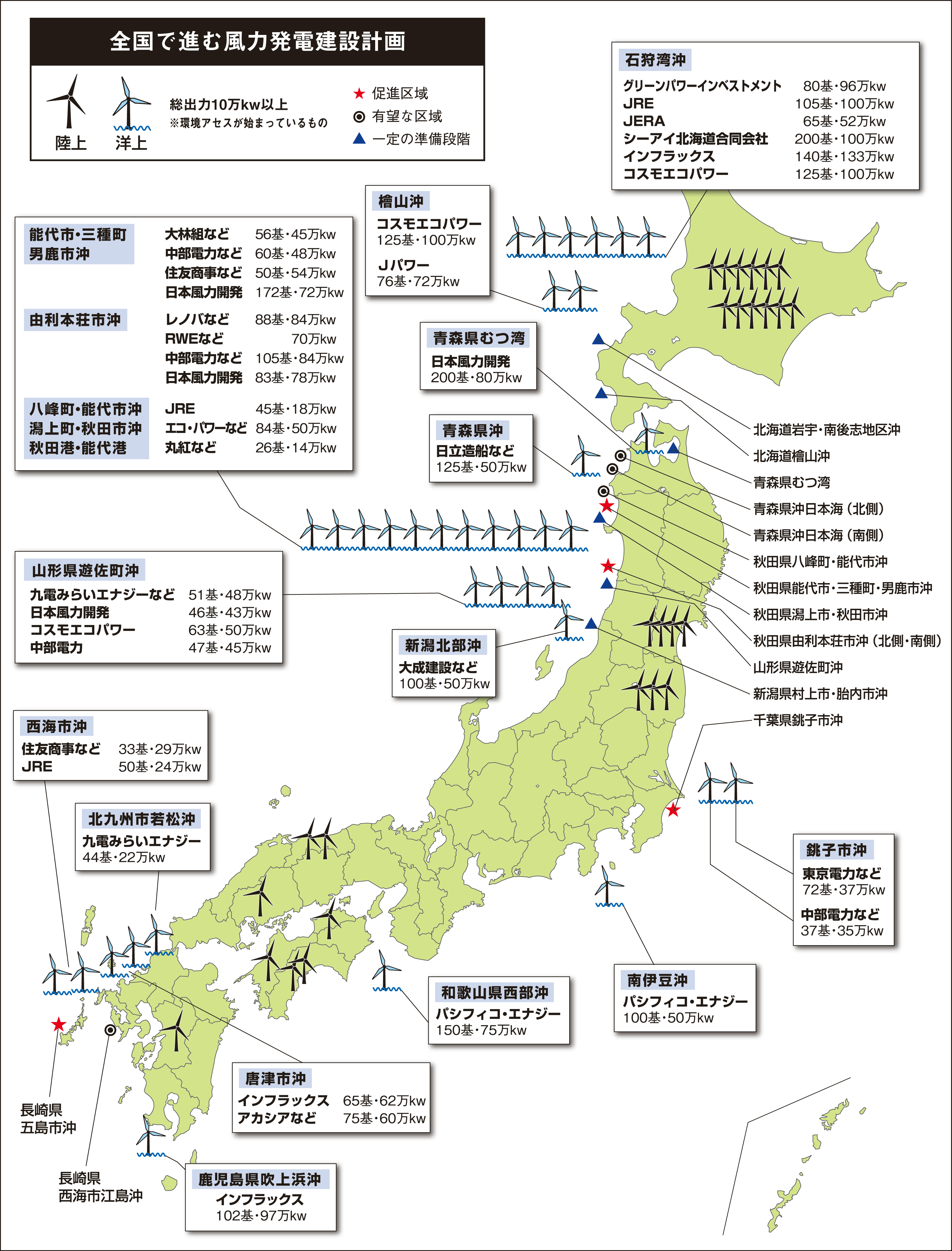 そのなかで風力の市場から得られる莫大なもうけを手にしようと、東電をはじめとする電力会社や商社、石油・ガス会社、ゼネコンなどがあいついで参入している。