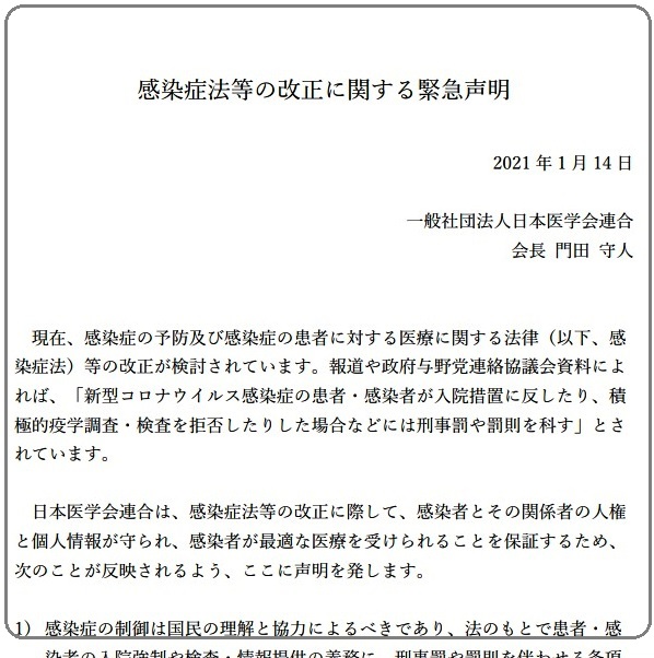 ← 罰則規定は感染症法の理念に反する 感染者の社会的不利への補償充実を 日本医学会連合等が緊急声明