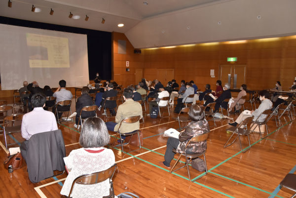 佐藤氏の講話後には、参加した地元住民との質疑応答に移った。地元から参加した住民たちの間では、近年増えている豪雨や台風による水害と山の関係などへの関心も強く、地域の山の機能をいかにして維持していくかという議論に熱が入った。また風力発電建設計画のもとで、保安林に指定されている山が開発されることによって土砂崩れや水害が起きやすくなることを懸念した質問も多かった。