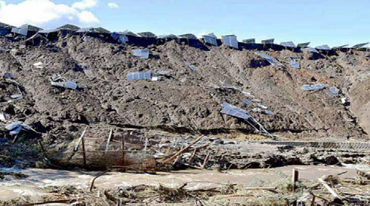 土砂災害で崩落したソーラーパネル