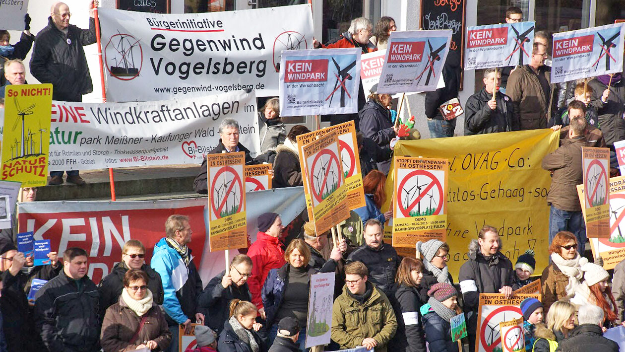 ドイツ東ヘッセン州の市民運動「理性の力」地域同盟の呼びかけでおこなわれた風力建設反対の8000人デモ(2015年)