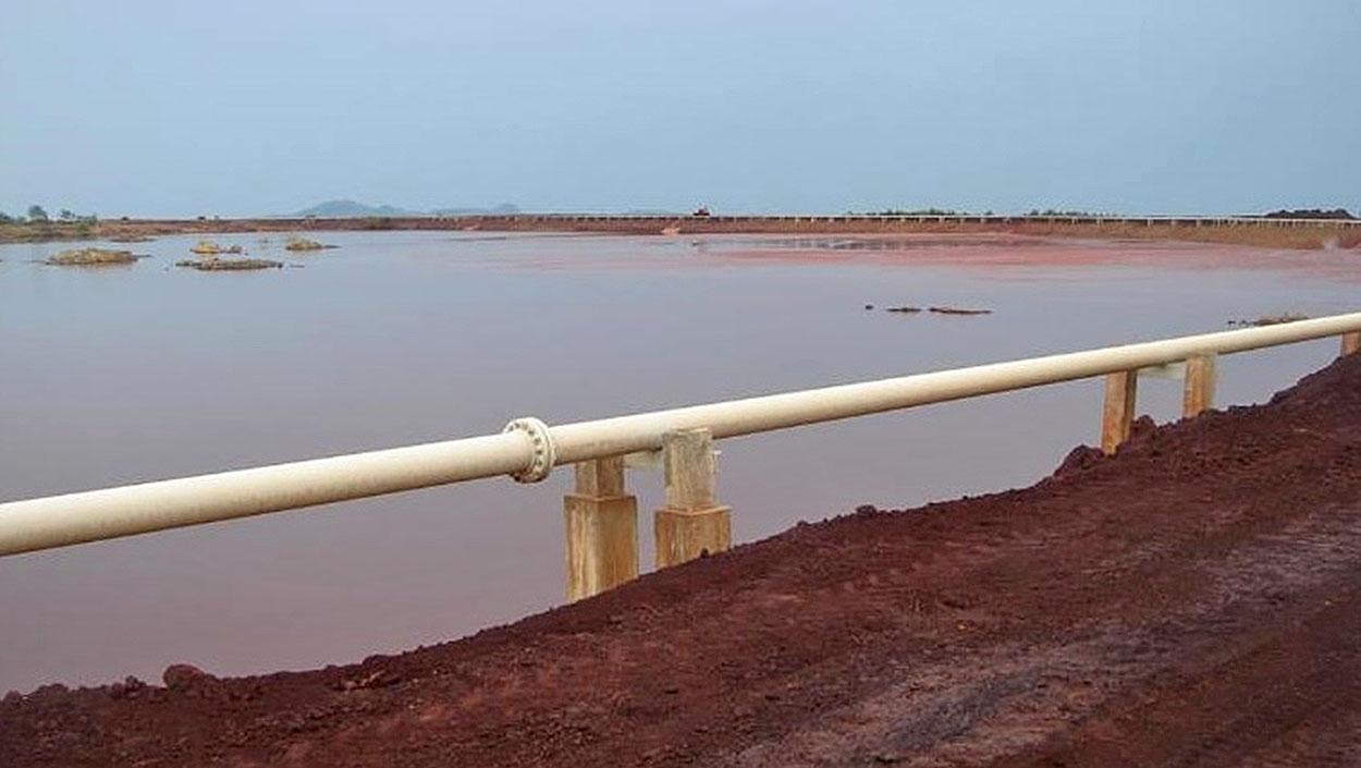 テーリングダムと海に向かうパイプライン(コーラル・ベイ・ニッケル製錬事業)
