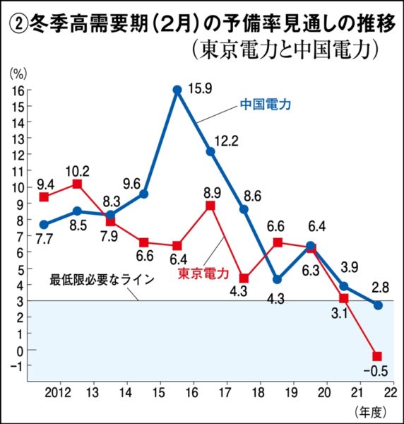 ちなみに2022年1~3月の東京エリアの見通しはマイナス2・1~0・8と非常に低い数字が出ており、安定供給にはほど遠い。