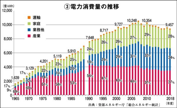 2011年3月に発生した東日本大震災と東京電力の福島第1 原発事故などにより、電力不足が一気に問題化した。政府は「原発が稼働できないから節電せよ」と煽り、2011年の夏には、東京電力と東北電力管内では石油ショック以来37年ぶりとなる電力使用制限令を発動した。企業など大口需要家には対前年比15%の使用電力削減が義務づけられ、他の電力会社の圏内でも自主的な節電のとりくみが要請された。