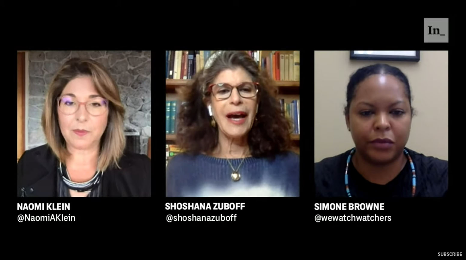 左から、ナオミ・クライン、ショシャナ・ズボフ、シモーヌ・ボラウンの3氏によるパネルディスカッション(2020年9月)