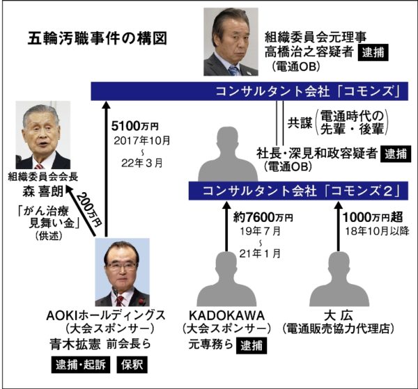 電通界隈の汚れた関係性から汚職が広がり、AOKIからは高橋元理事の「コモンズ」に、KADOKAWAや大広からは深見の「コモンズ2」へと賄賂が渡ったことが明らかになった。そして、最終的に組織委理事を務める「口利き役」の高橋元理事へとカネが集まる仕組みができあがっていたというわけだ。