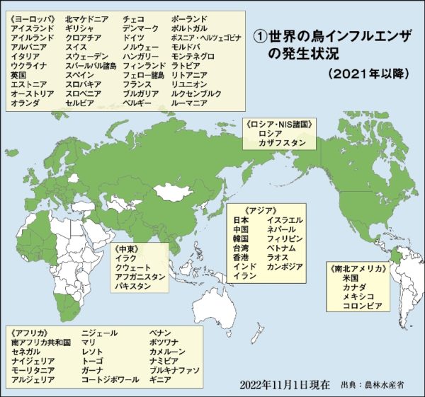 なぜ今シーズンこれほど日本で鳥インフルエンザが急増しているのか。実は昨シーズンから、世界各国でも鳥インフル被害が拡大しており、とくにヨーロッパでは過去最大規模で流行している【図1】。こうした世界の感染状況は日本国内の被害状況とも密接に関わっている。