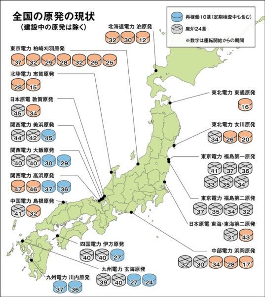 政府は1999年に福島第一原発1号機など、1970年前後に運転を開始した3基の寿命延長計画を認め、2005年には原発の運転を60年間とすることを想定した対策をまとめ、その後運転開始から40年を迎える原発を認めるなど老朽原発を積極的に酷使する方針をとってきた。