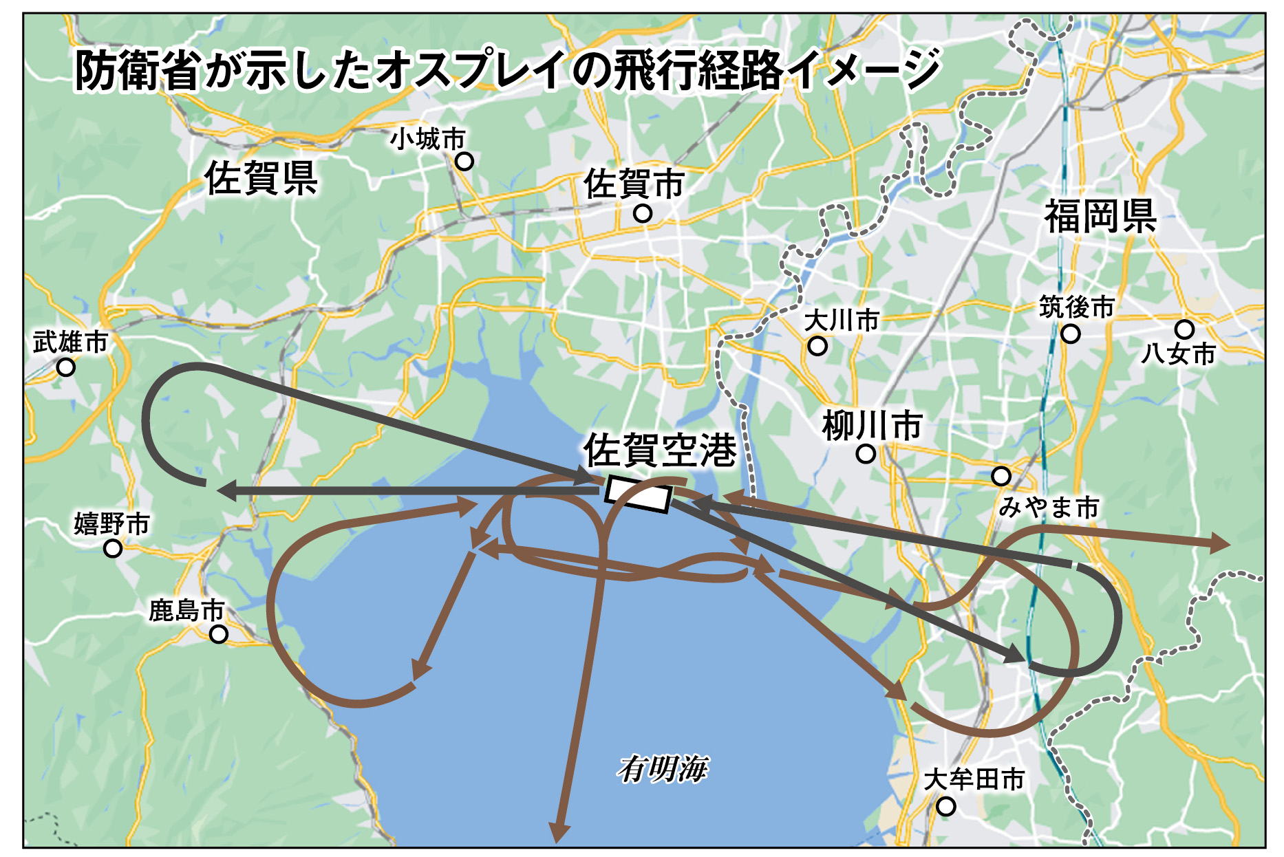 オスプレイの飛行ルート(悪天候を想定した離着陸)