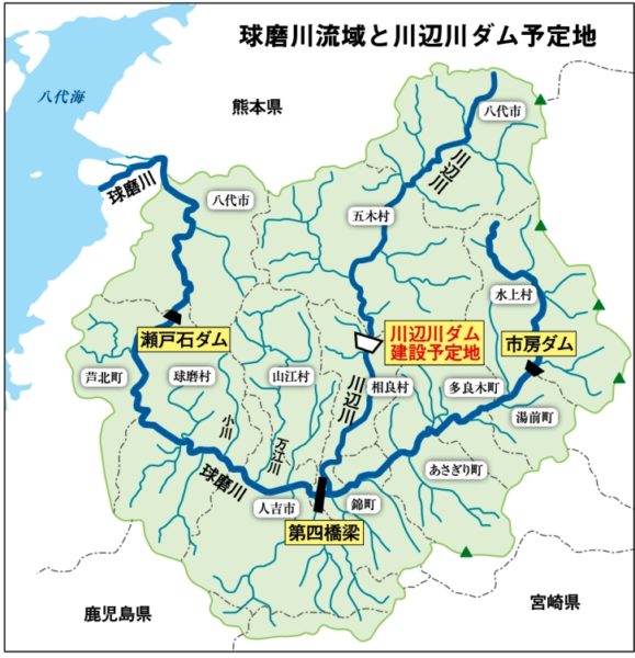 市房ダムのある球磨川上流では、大雨のあと、長期にわたる濁水発生が常態化しているという。それでも球磨川は、相良村で合流する川辺川のおかげで、かろうじて清流を保つことができている。したがってこの川辺川にダムをつくることは、清流・球磨川への死刑宣告にも等しい。