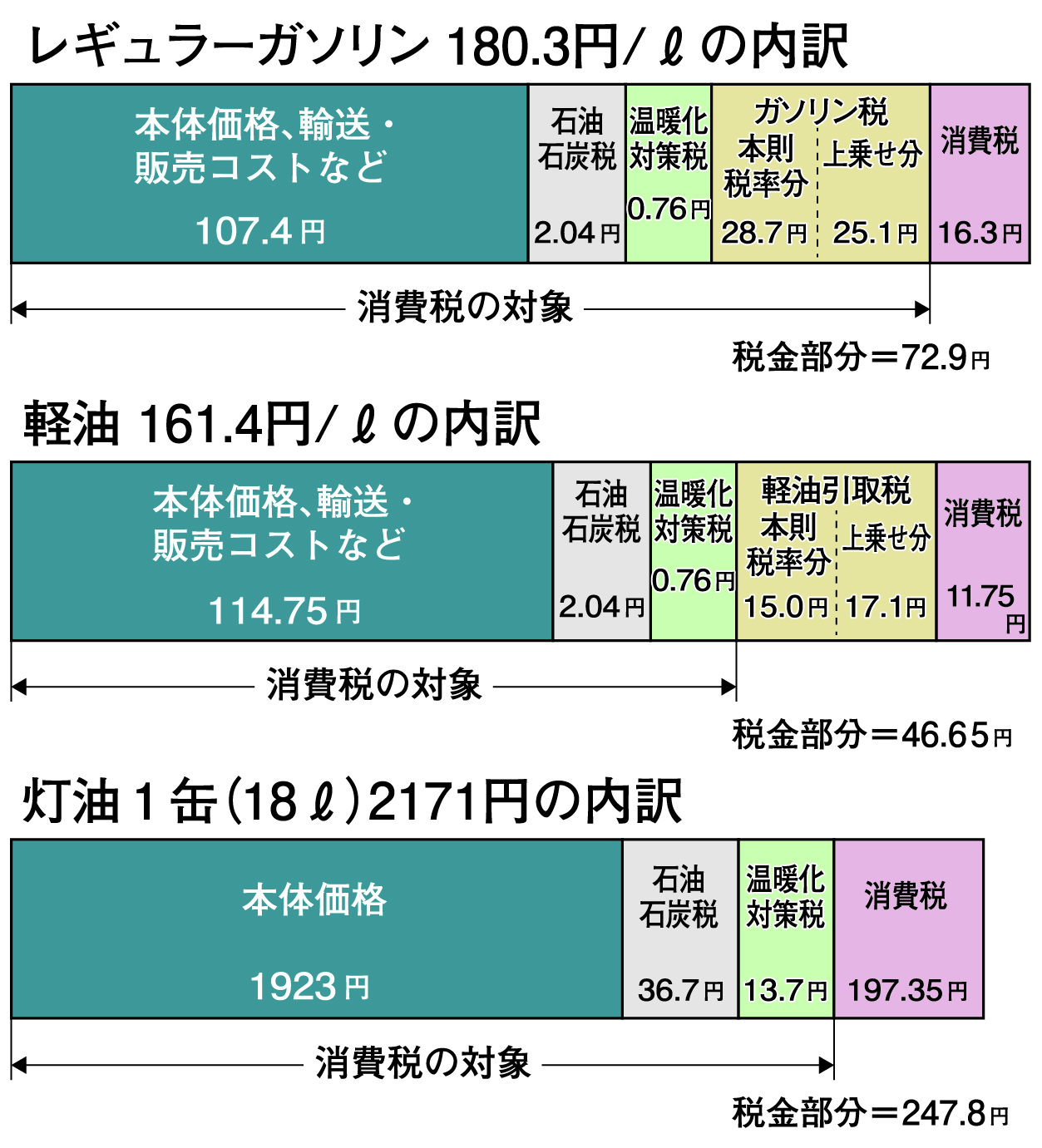ガソリン高騰、過去最高値に 補助金廃止で200円台も 店頭価格の4割が税金 ガソリン税撤廃し生活と産業守れ