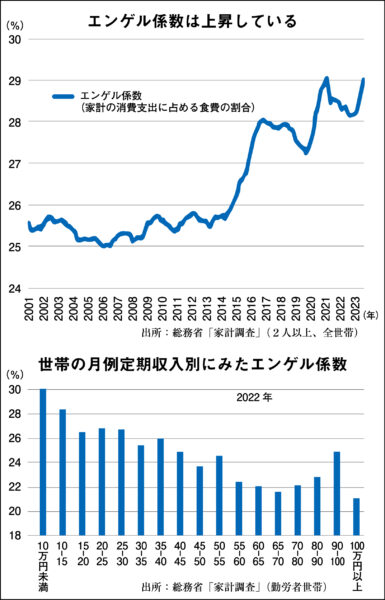 小さな子どもを育てる家庭では紙オムツなども必需品であるほか、成長期であれば1年前に着た服は小さくなって更新も必要だ。通学のための交通費もかかる。そうした子どもの成長段階に応じて必要なものは削ることはできないから、結局、食費を削るようになっている。