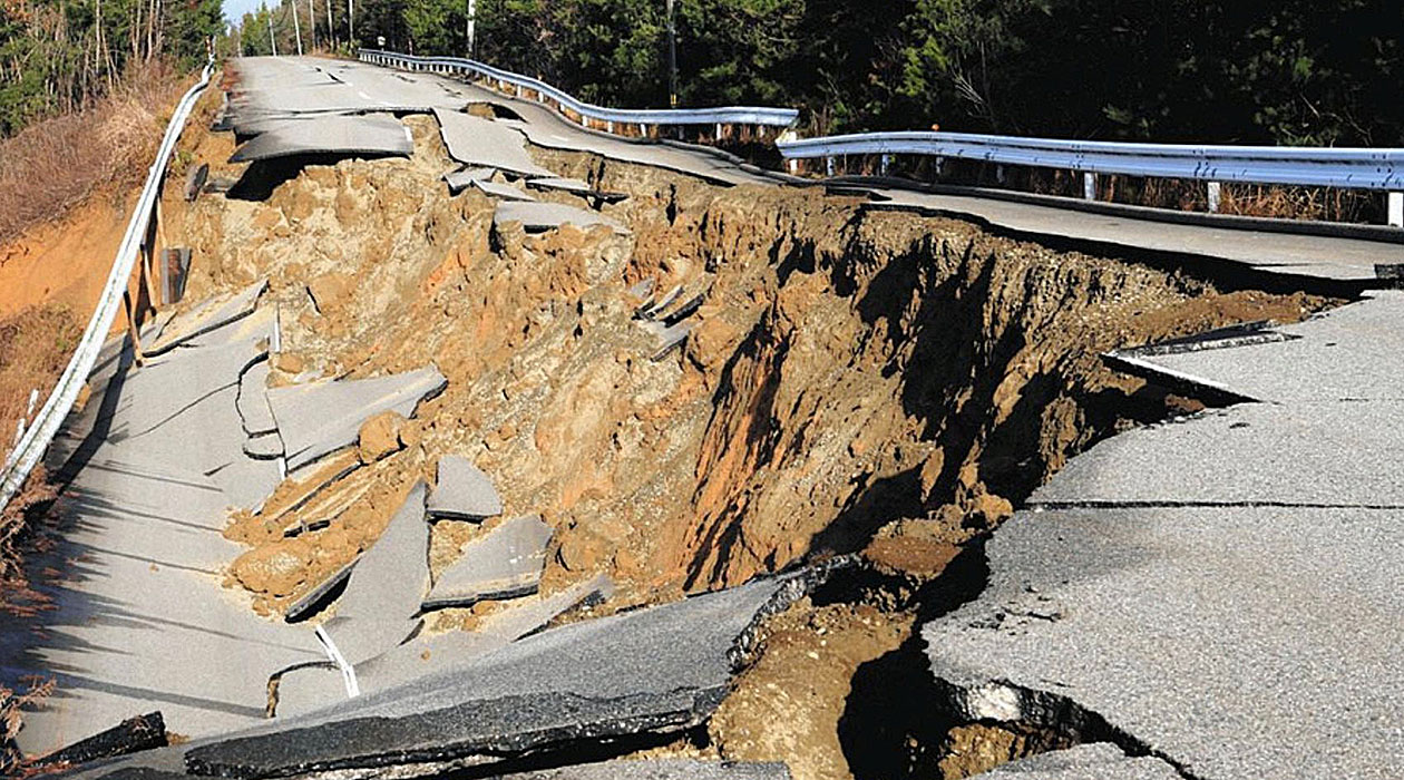 地震で崩落した道路(石川県志賀町)