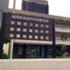 計画地と隣接する旭区公民館前に掲げられた横断幕(3月20日、うるま市石川)