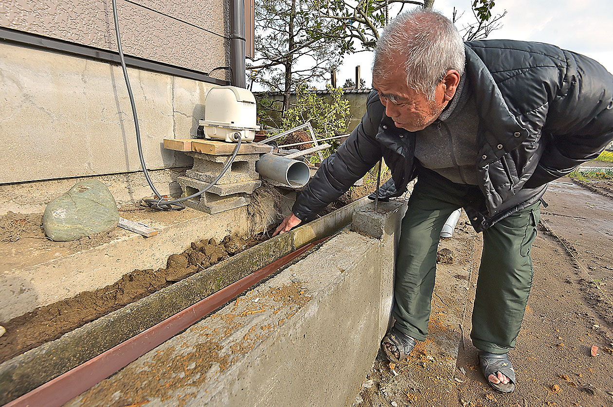 自宅の基礎と地面の間に10㌢以上の亀裂が入ったが「準半壊」とされた男性(珠洲市)