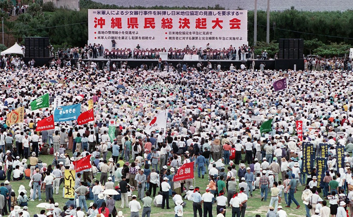 1995年10月、少女暴行事件に抗議する県民総決起大会では8万5000人が米軍への