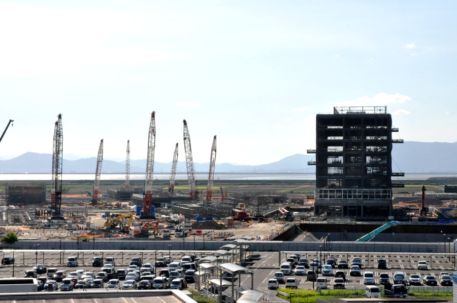 急ピッチで駐屯地建設工事が進められている佐賀空港隣接地(7月29日、佐賀市川副町)