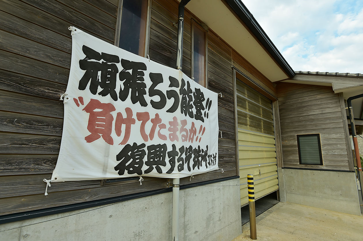 漁港に掲げられた横断幕(珠洲市高屋地区)