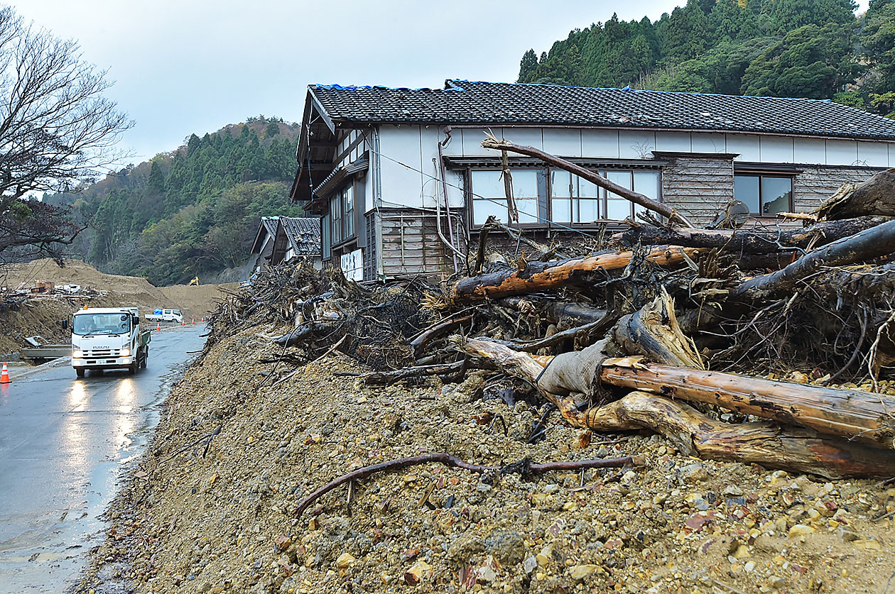 住宅を呑み込んだ土砂は3㍍の高さにおよんでいる(26日、珠洲