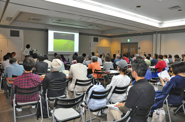 最後に金井塚務氏が「市街地出没の背景」として、これまで奥山の動物だったクマが近年は二次林を主たる生息地にしている現状を話した。1960年代から始まった大規模な広葉樹林の伐採によってクマの生息域が減少し、河川も大きなダメージを受けた。金井塚氏は「クマが奥山に帰れる環境を取り戻すことが大切だ。まずは奥山にサンクチュアリ(聖域)をつくるなど実験的なとりくみをしてみなければならない」とのべた。