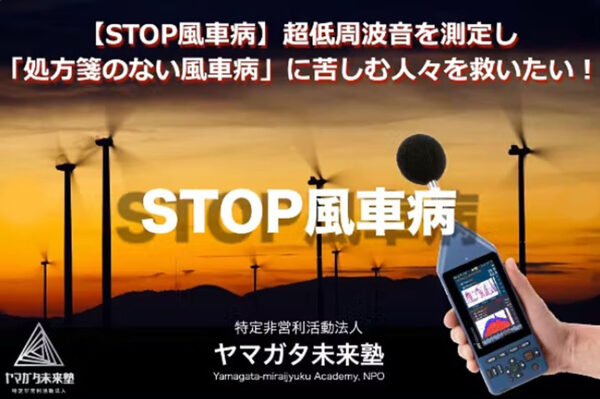 全国の風力発電周辺住民のなかで、深刻な睡眠障害や頭痛、動悸、耳鳴り、めまいなどの健康被害で苦しむ人が一定の割合で生まれている。これは、風力発電の超低周波音による「風車病」と呼ばれている。しかし、この「風車病」については科学的な解明が進んでいない。そこで、物理学者と医師がタッグを組み、被害者の自宅で超低周波音を定量測定してその実態を解明する「STOP風車病」プロジェクトを開始した。ホームページを立ち上げ、200万円をめざしてクラウドファンディングを呼びかけている。
