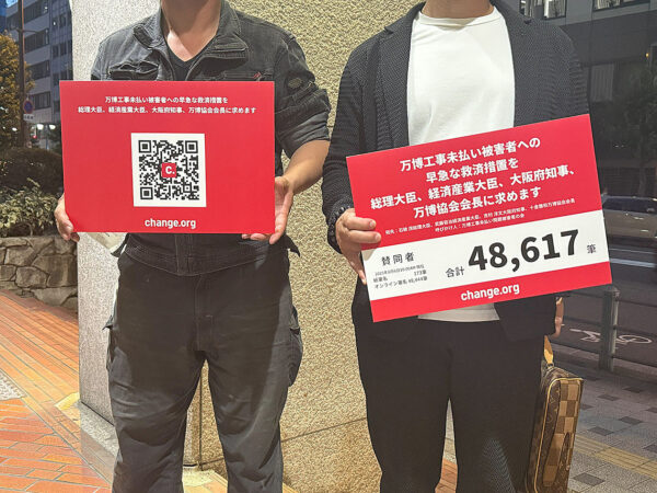 万博工事未払い問題被害者の会が始めた署名は5万筆近くにのぼっている(6日現在)