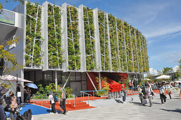 中国館は万博の海外パビリオンのなかでも来場者の注目を集めているパビリオンだ。伝統的な書道の巻物を広げたような竹の外観が特徴で、「自然と共に生きるコミュニティの構築」のテーマに沿って、有形・無形文化財や生態系、農業などから、人工知能、宇宙開発などについて展示されており、入館しようと多くの人が列をなしている。
