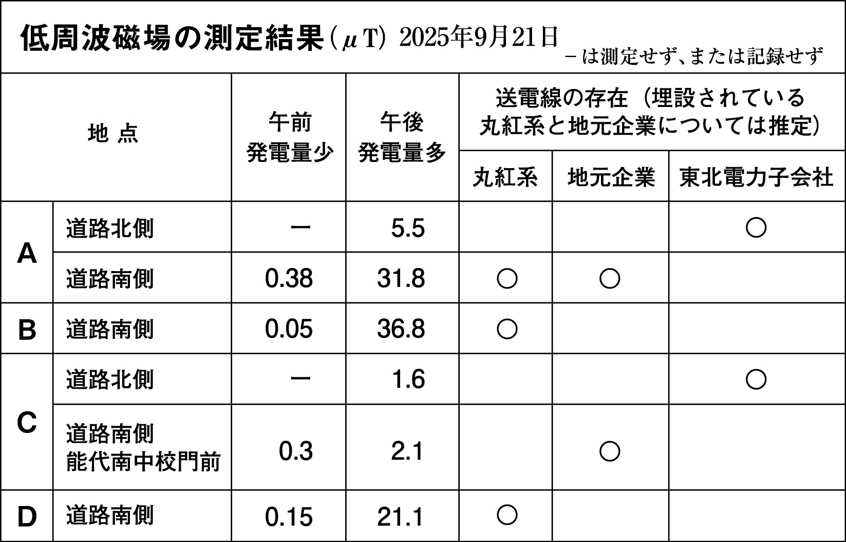 風力の送電線から強い電磁波 秋田県能代市の学校付近で測定 懸念される健康被害 電磁波問題市民研究会の報告から