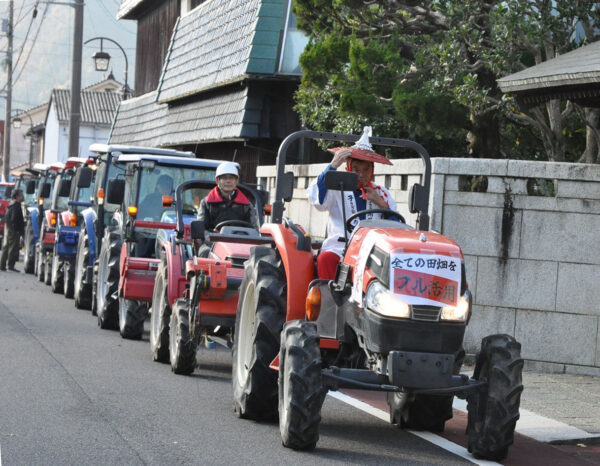 コメ増産のための国家支援を求めるトラクターデモ(11月21日、島根県吉賀町)