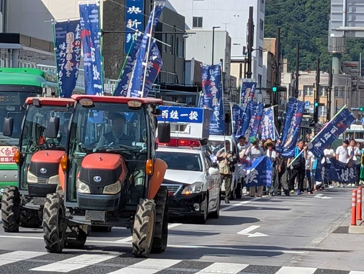 鳥取県吉賀町でおこなわれた「令和の百姓一揆」トラクターデモ(7月)