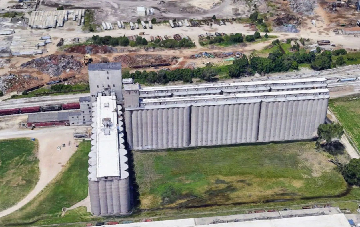 米国カンザス州にある世界最大規模のカントリーエレベーター。コンクリートタンク 246 基で構成されている