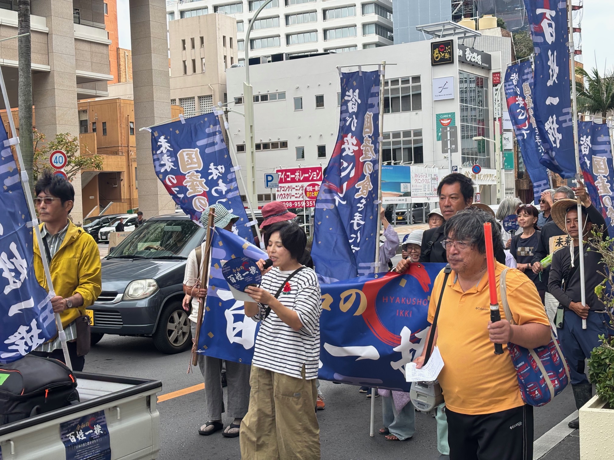 沖縄県那覇市でおこなわれた「うちなーはるさー(沖縄の農民)」一揆(3月29日)