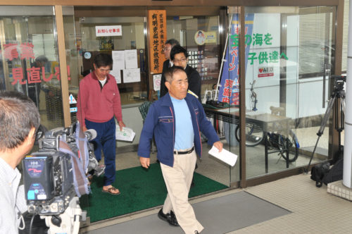 説明会を終えて、取材陣の囲みを受けた南川副支所の田中運営委員長は、「全体を通じて賛成意見はまったく出なかった。南川副支所のノリ漁業者は今後も反対を貫いていく姿勢に変わりはない」としたうえで、主な反対理由として「佐賀市長も立会人になった佐賀空港建設に関する公害防止協定に“自衛隊とは共用しない”とはっきり明記されており、その約束についての説明がされていない」とした。