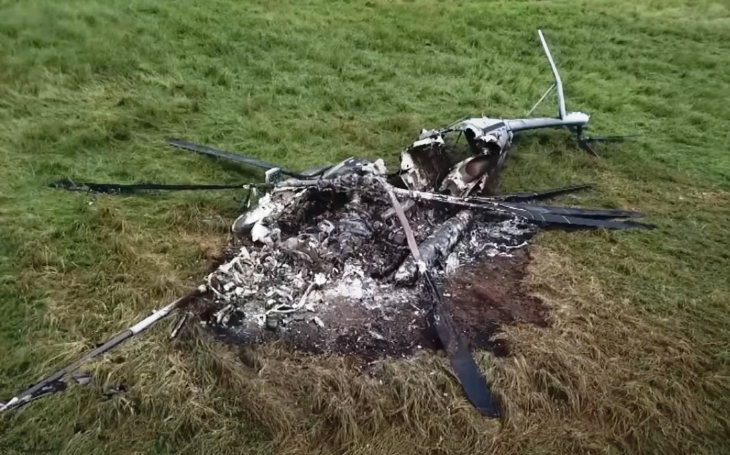 民間の牧草地に墜落炎上した米軍ヘリの残骸(12日、沖縄県東村高江)