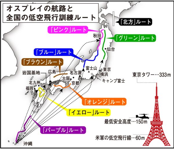 さらに米軍が設定した専用の低空飛行ルートが8ルートあり、沖縄から北海道まで全国を網羅している。しかも所属米軍基地から低空飛行ルートで飛んでいくため、米軍機は日本の上空をどこでも自由に飛び、訓練できることを意味する。日本の民間機は飛べない所が山ほどあるが、米軍機はどこでも自由に飛べ、事故を起こしても無罪放免になるのである。それは空域だけにとどまる話ではない。沖縄にとどまらず首都圏など全国に米軍基地が盤踞し、政治のあり方を含め、すべてアメリカに支配された日本の現状との矛盾は極点にきている。