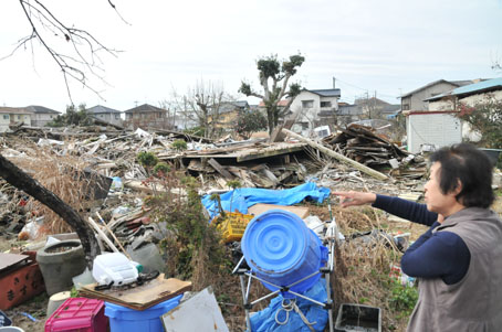 公費解体の申請は2111件あるため、解体完了までに「2年」を見積もっており、それまで生活再建には向かえない。たまりかねて自費解体する人も少なくない。住民に聞くと、水道や下水などの生活インフラが復旧しておらず、ほとんどの人が仮設住宅に入り、自立を目指す人は自分で小屋やプレハブを建てて、水道管や消火栓などからホースを引っ張って生活用水にしていた。戦場での難民キャンプの様な状況で、とても「復興に向かっている」などといえる状況ではない。住民の多くが仮設住宅や町外に離散しているため、商店や病院を再開しても成り立たない。このままずるずると避難生活が伸びることで、町としてのコミュニティが崩壊し、復興の活力や震災前の地域の原型を失ってしまうことが危惧されていた。「現状を伝えてほしい!」と現地の人たちは切実に訴えていた。
