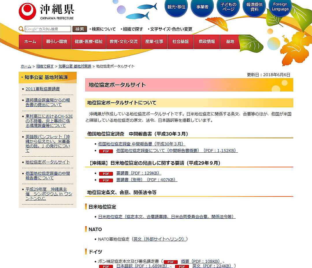 世界でも稀なる主権放棄の日米地位協定 沖縄県が独自調査をHPで公表