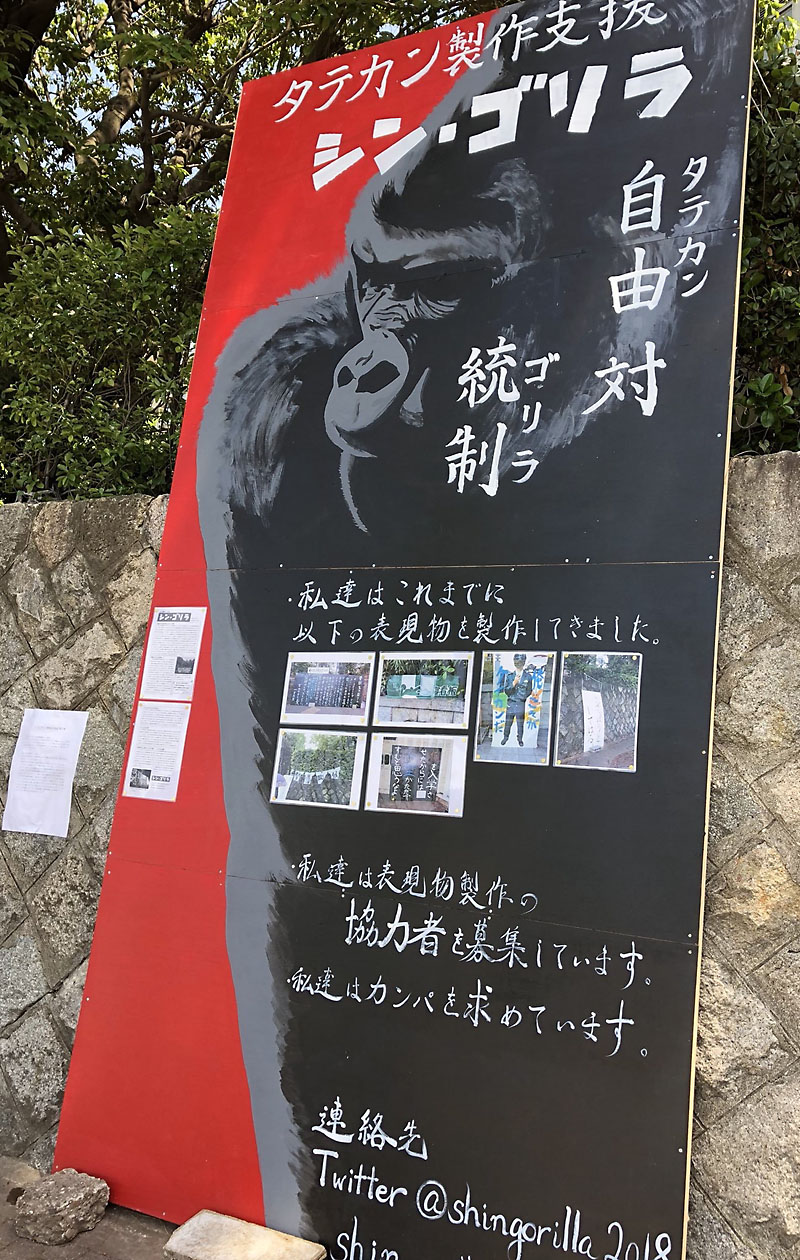 ゴリラ研究で有名な山際総長を意識したと思われる立て看