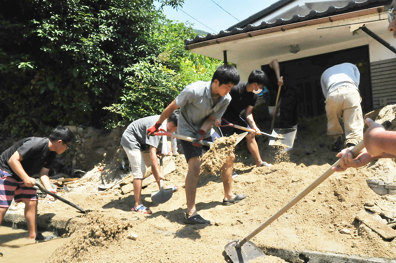 酷暑の復旧 スコップ抱え住民総出で土砂掻き出す 高校生・大学生ボランティアも貢献