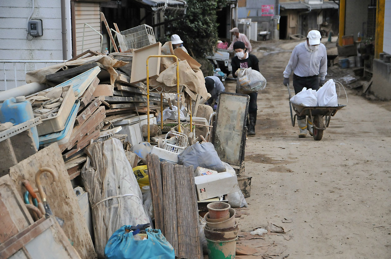 ← 酷暑の復旧 スコップ抱え住民総出で土砂掻き出す 高校生・大学生ボランティアも貢献
