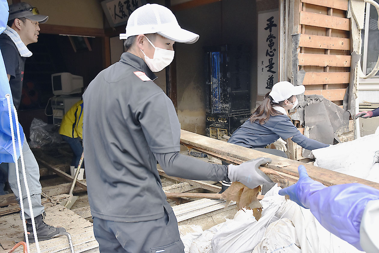 重機が使えない家屋内での作業は多くの時間と人手を要する(20日、坂町小屋浦)